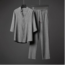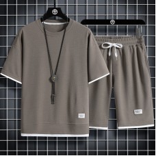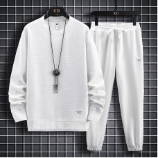Men's White Color Tracksuits Casual 2 Piece Set