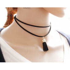 Black Fashion Long Chain Black Rose Pendant-Silver