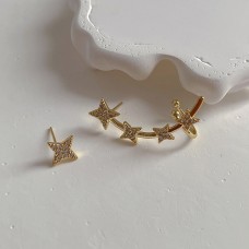 Gold Color Silver Needle Black Stone High Quality Earrings