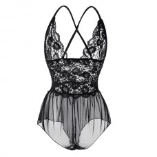 Solid Color Strap Backless Swimwear Beach Bikini Bodysuit - Black