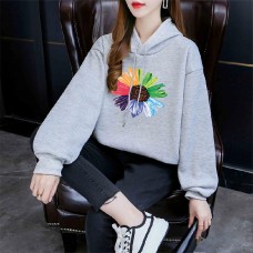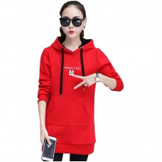 Trendy Hooded Long Sleeve Alphabet Printed Drawstring Hoodie - Pink